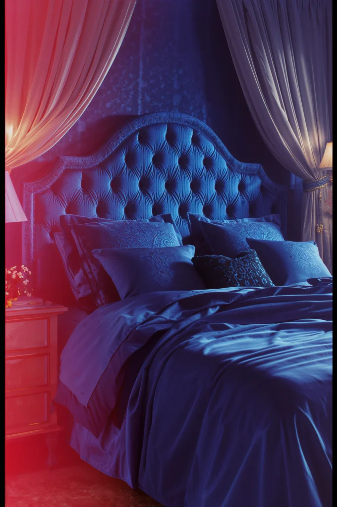 Velvet or satin tufted headboards deliver glamorous bedrooms.