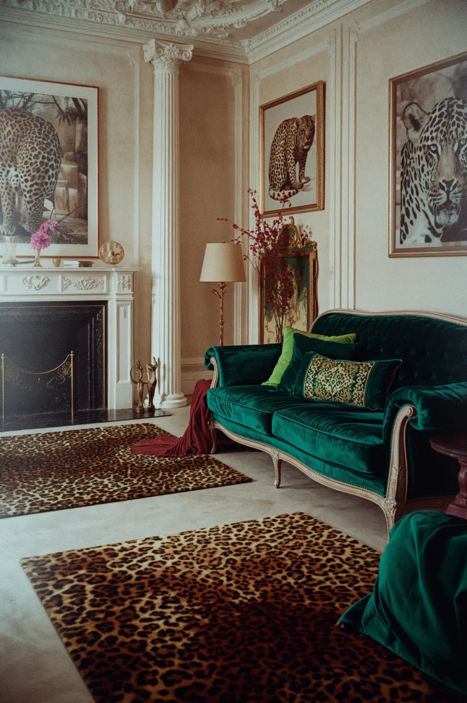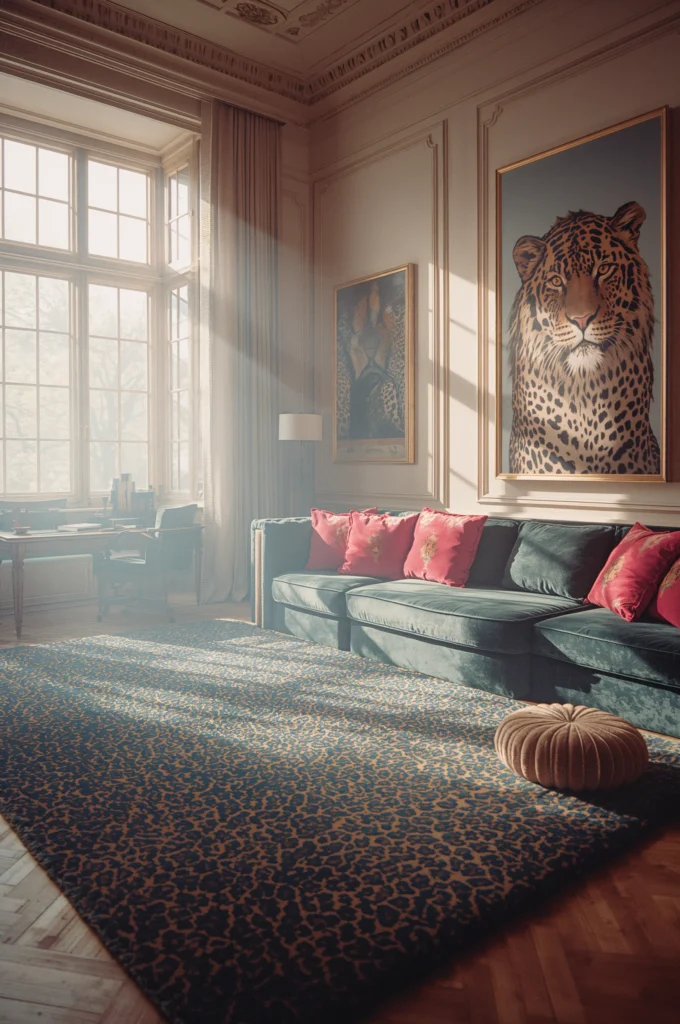 Leopard, zebra, or sharkskin patterns on rugs, cushions, or furniture for a stylish accent.