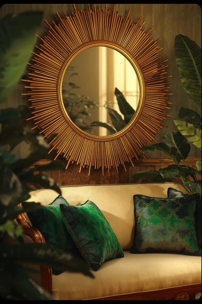Mirrors with sunburst, geometric, or rounded frames maximize light and add glamor.