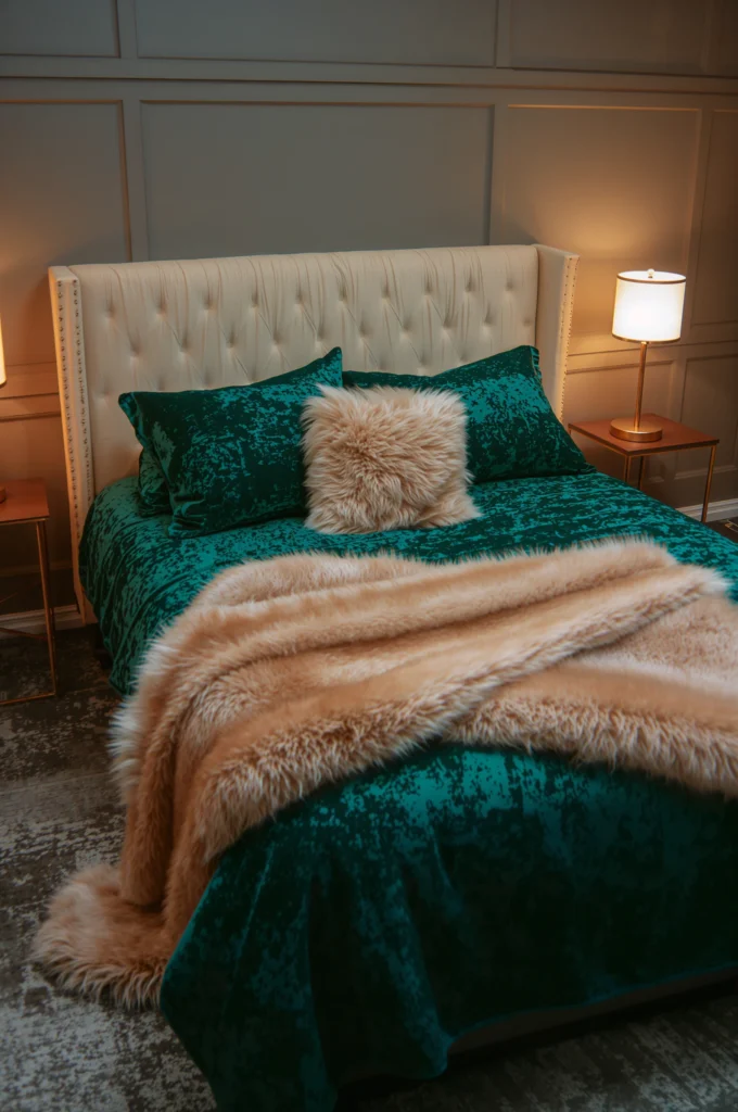 Velvet bedding is the ultimate way to bring softness and luxury into your baddie bedroom. This fabric instantly elevates your bed, giving it a glamorous hotel-like feel. Go for jewel tones like emerald, sapphire, or deep burgundy for richness, or opt for classic black for that sleek, chic look. Layer your velvet duvet with plush throw blankets and oversized faux fur pillows to add dimension and coziness. To complete the look, coordinate your bedding with a tufted headboard or gold-accented side tables. The tactile feel of velvet creates a statement while ensuring comfort, making it both practical and stylish.
