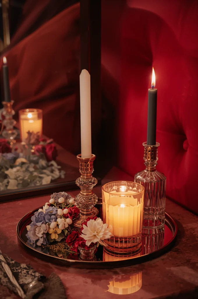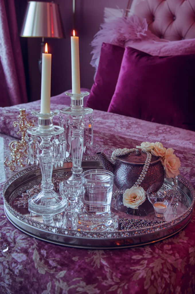 Candles create ambiance while doubling as stylish décor. Arrange them in clusters on trays with crystals or flowers. Go for luxe scents like vanilla, oud, or rose. Use chic candle holders to enhance the vibe. Lighting candles instantly transforms your space into a cozy, glam sanctuary.