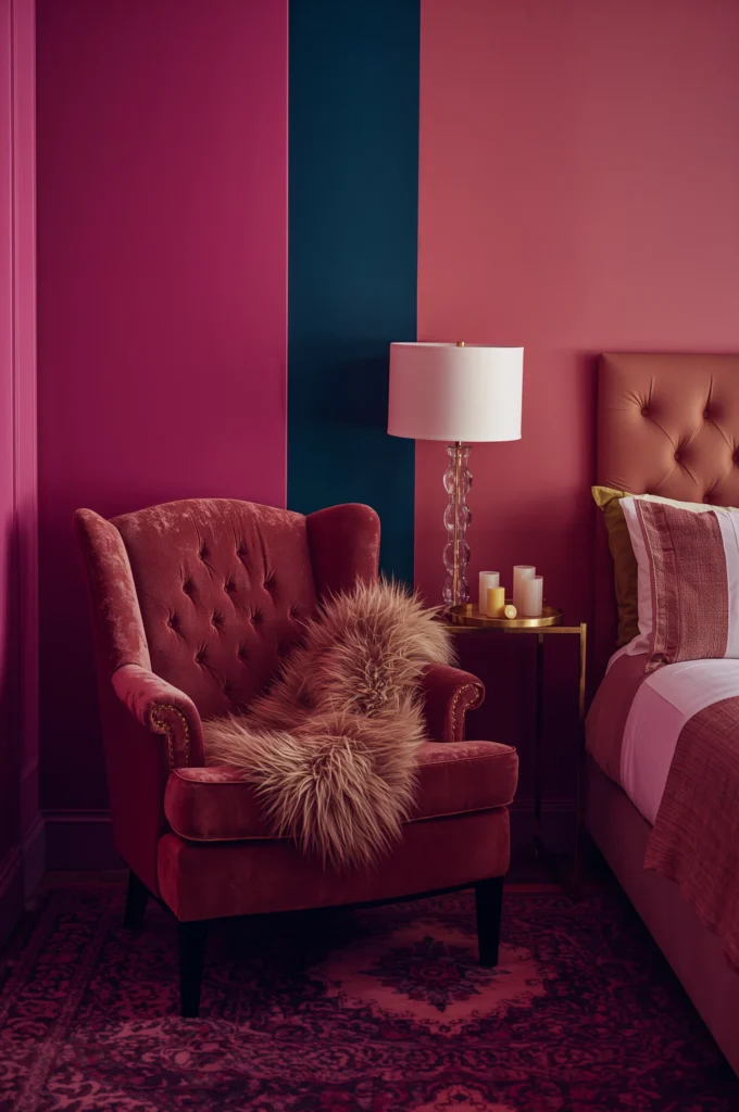 Create a chic seating nook with a velvet armchair or acrylic accent chair. Add a faux fur throw and a side table with a scented candle. This spot is perfect for reading, scrolling on your phone, or snapping selfies. A seating area brings balance and functionality while enhancing the stylish aesthetic.