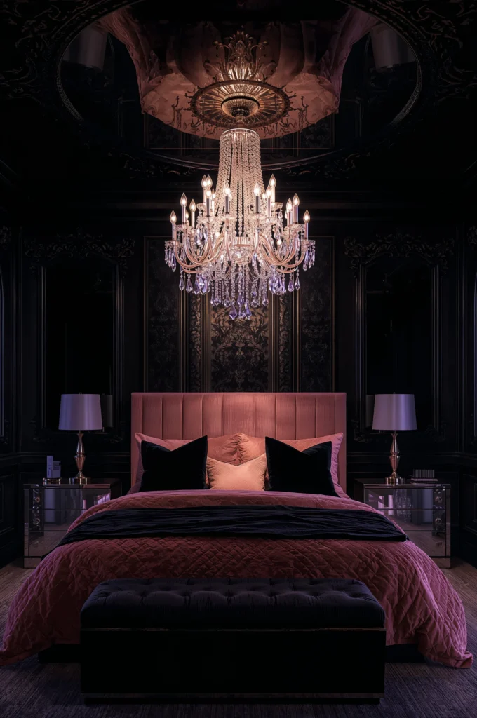 Swap out basic overhead lights for a glamorous chandelier to instantly elevate your baddie bedroom. Crystal, gold, or modern sculptural chandeliers add a luxurious glow and create a focal point. Pair your chandelier with dimmable bulbs so you can adjust the mood depending on the vibe—bright for selfies, warm for winding down. This design element blends function and drama, making your bedroom both photogenic and practical.