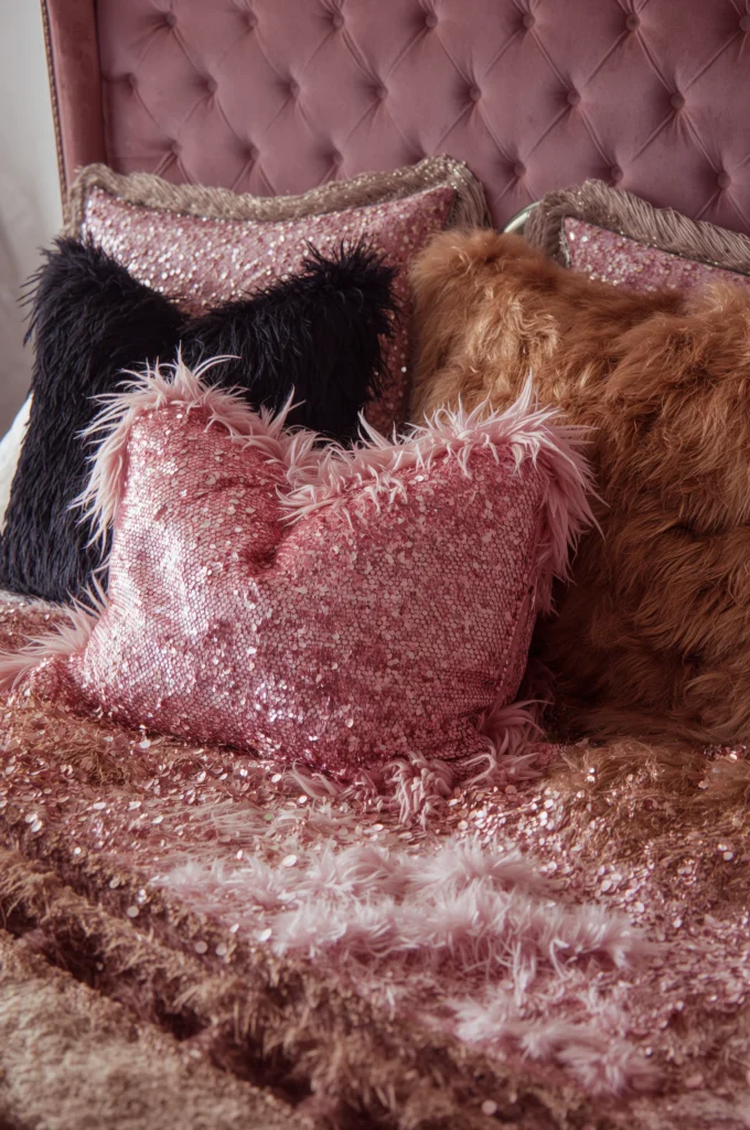 Throw pillows are the easiest way to elevate your bed or seating area. Mix textures like sequins, faux fur, velvet, and metallics to create depth. Stick with a cohesive color scheme—think blush, black, and gold for a classic baddie vibe. Oversized pillows add comfort and drama, while smaller accents create balance. Rotate pillow covers seasonally to refresh your space without major changes.