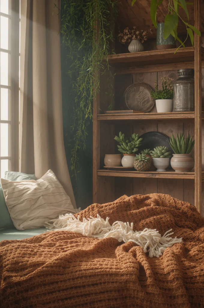 Bring nature indoors with potted plants, wooden furniture, and organic bedding materials. A chic bedroom grounded by natural elements feels refreshing and inviting, perfect for creating Pinterest board-worthy cozy sanctuaries. Opt for simple, elegant pottery and greenery to add life without overwhelming the space.