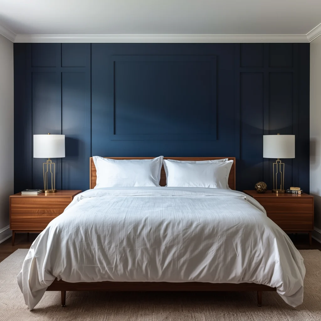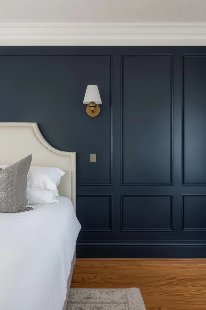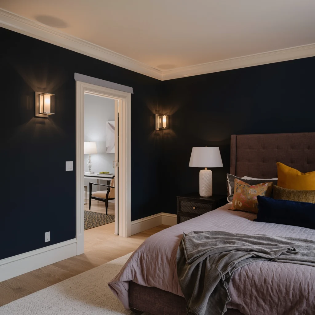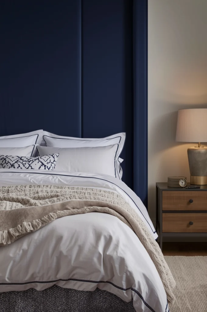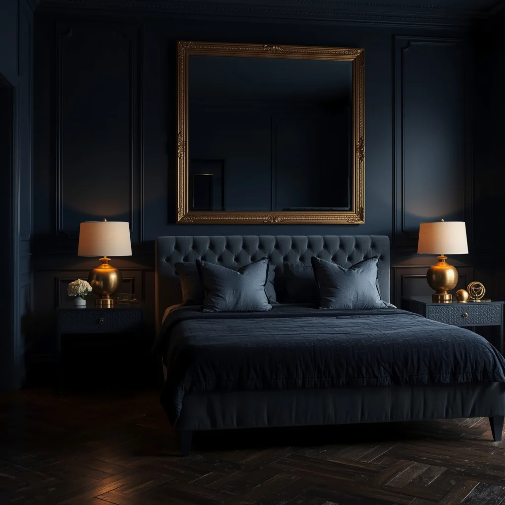 Dark blue works beautifully in bedrooms because it is calming, grounding, and pairs well with many styles. It promotes rest, complements both modern and traditional aesthetics, and makes a space feel intentional. Plus, it can be dramatic or understated depending on how you style it.