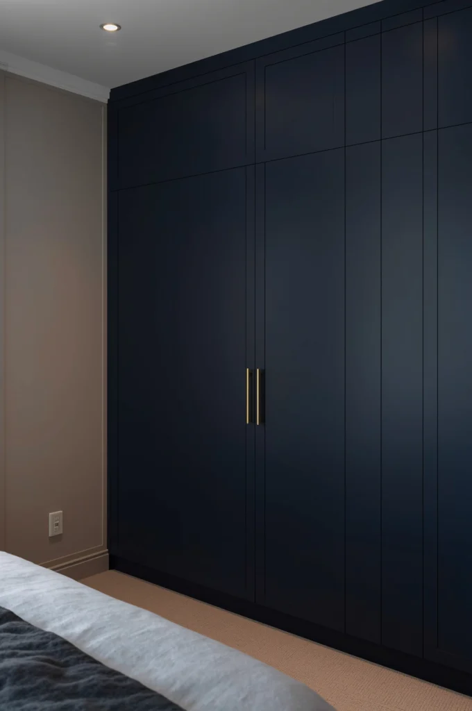 Transform closet doors by painting them navy for a bold statement. This idea works well in rooms with white or light-colored walls. Closet doors often go unnoticed, but with a dark blue coat of paint, they become a stylish focal point. If you have sliding doors, consider adding paneling before painting for a more custom look. For a softer effect, use navy only on the door frames and keep the panels light. Pair with matching navy handles or knobs to complete the upgrade. This DIY gives your room a polished, built-in feel without a full remodel.
