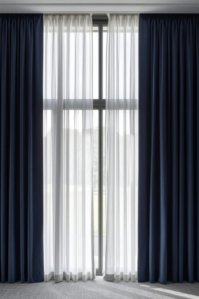 Dark blue curtains instantly add drama and elegance to a bedroom. Opt for heavy velvet drapes for a luxurious look or lighter linen curtains for an airy vibe. Floor-to-ceiling curtains in navy make windows appear larger and ceilings taller. They also block out light, making them great for better sleep. Pair navy curtains with white sheer layers underneath for flexibility—daylight during the day and privacy at night. Choose metallic curtain rods in brass or black for a polished finish. If your bedding is light-colored, navy curtains provide the perfect balance and prevent the room from looking flat.
