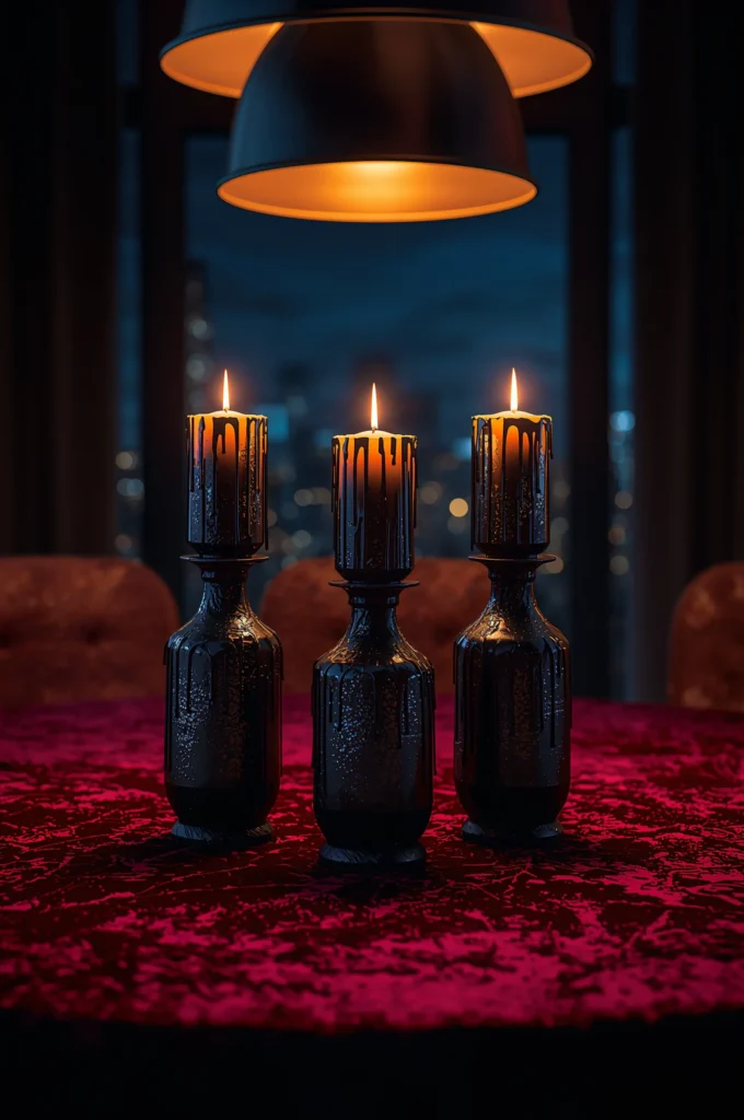 For a moody and gothic touch, transform simple Dollar Tree vases or glass candle holders into haunted décor. Spray paint them black or metallic gray, then use hot glue to create dripping effects around the rim before painting. The drips mimic melted wax for an authentic spooky look. Pop in LED candles or flameless tea lights for a glowing effect without the fire hazard. These candle holders work perfectly on mantels, dining tables, or even outdoor setups. The eerie vibe pairs beautifully with cobwebs and faux skulls, instantly elevating your Halloween theme.