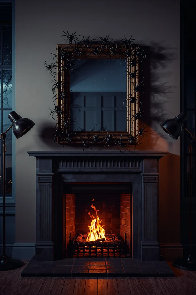 Nothing screams spooky like a mirror covered in crawling spiders. Dollar Tree mirrors are inexpensive and easy to customize. Hot glue an assortment of plastic spiders all around the frame, then spray paint everything black for a cohesive look. Hang it above your mantle, in your hallway, or even as part of a Halloween photo backdrop. The creepy-crawly effect is subtle but impactful, adding just the right amount of fright without being over the top. Pair it with cobwebs or dim lighting for maximum spookiness.