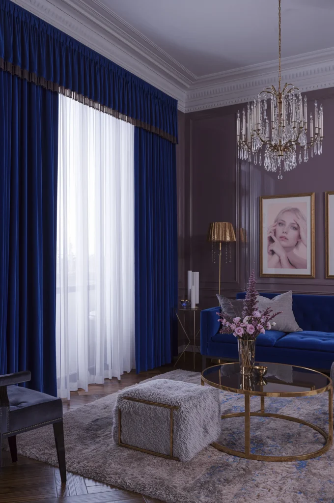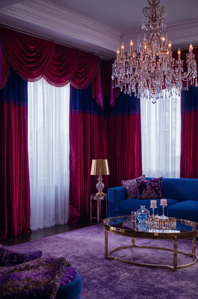 Layered curtains bring depth, elegance, and texture to a glam living room. Use sheer fabrics underneath heavier velvet drapes for a rich, layered effect. Jewel-toned or metallic-finished curtains enhance the luxurious feel. Tiebacks with crystal or metallic details add a decorative touch. Floor-to-ceiling drapes make the room feel taller and grander. Layering curtains also improves insulation and privacy. Mix patterns subtly with solids for visual interest. Match curtain hardware with other metallic accents for cohesion. Layered curtains balance natural light and glam style. They complete the luxurious, curated vibe of a glam living room.