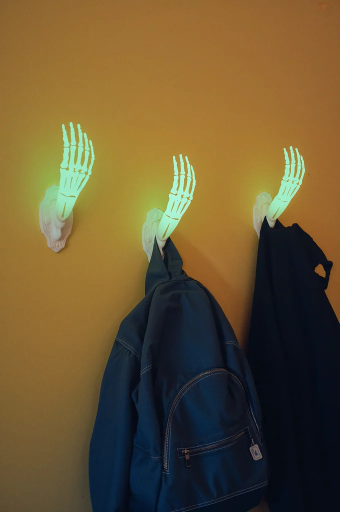 Wall hooks shaped like skeleton hands or bones are both functional and festive. Kids can use them to hang coats, hats, or backpacks while enjoying the Halloween vibe. For a DIY option, paint regular hooks white and add bone details with black paint. Glow-in-the-dark versions add extra fun at night. Install them at kid-friendly heights so children can easily use them. This idea combines style with practicality, which is perfect for smaller bedrooms. It’s also a subtle way to add Halloween touches without overwhelming the decor. Functional decor like this makes seasonal decorating more worthwhile.