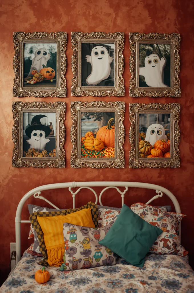Seasonal wall art is a quick way to change up the vibe of a room. You don’t need expensive prints—simply download free Halloween printables and frame them. Designs like “Trick or Treat,” cute ghosts, or candy illustrations make perfect art for kids rooms. For a bolder look, hang canvas art featuring pumpkins or haunted houses. If your child loves DIY, they can even create their own Halloween paintings to display. Choose lightweight frames or washi tape to hang them safely. Rotating artwork with the seasons keeps the bedroom fresh and exciting. Wall art adds personality without taking up floor or shelf space.