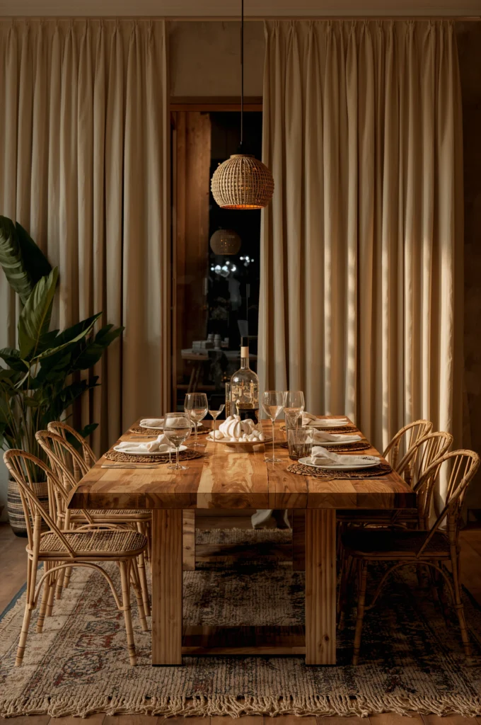 Japandi, a blend of Japanese and Scandinavian design, has become a sought-after interior design trend. It combines minimalism, functionality, and natural beauty. The color palette is neutral, often with soft whites, muted grays, and warm wood tones. Furniture is simple yet purposeful, with clean lines and low profiles. Natural light and open spaces are emphasized, creating calm and balance. Décor is minimal but intentional—ceramic vases, bamboo lamps, or linen fabrics add quiet beauty. Plants are used sparingly but thoughtfully, often in simple pots. This interior design trend promotes mindfulness and serenity, making it perfect for those seeking calm in a busy lifestyle.