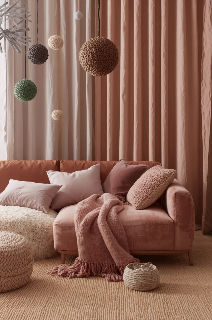 Layered textures are a major interior design trend, adding depth and coziness to spaces. Think chunky knit throws, velvet cushions, linen curtains, and shag rugs all in one room. Combining different textures creates a sensory experience while elevating simple décor. For example, pairing a leather sofa with a wool throw and woven basket adds instant warmth. Neutral palettes benefit from texture, as layering prevents the space from feeling flat. In bedrooms, mixing cotton sheets with velvet pillows and wool blankets makes the bed inviting. This interior design trend encourages comfort while showcasing creativity through textiles.