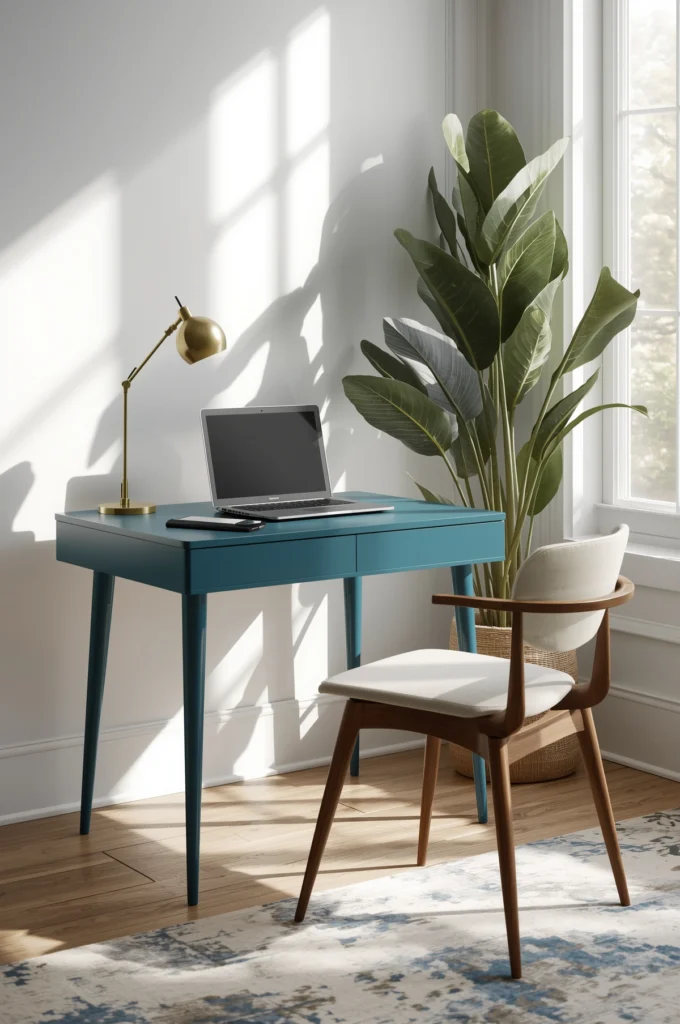 Home offices benefit from colors that inspire focus and creativity, and peacock blue does just that. This deep, calming shade promotes concentration while adding sophistication to the workspace. It pairs well with wooden desks, leather chairs, and metallic desk lamps. Consider painting all four walls for a dramatic effect, or just one accent wall behind the desk for balance. Add floating shelves or bookcases in contrasting tones for functionality. To avoid making the room feel too dark, balance with plenty of natural light or light-colored rugs and curtains. This bold hue sets the stage for a professional, stylish work environment, making working from home feel more enjoyable and productive.