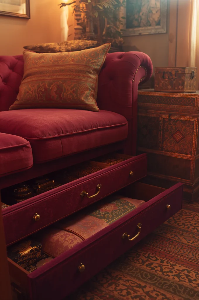 Ottomans or benches with hidden storage add seating and help organize belongings simultaneously.