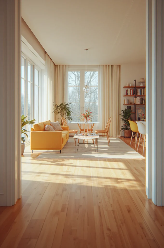 Using the same flooring throughout visually expands the space and unifies apartment areas.