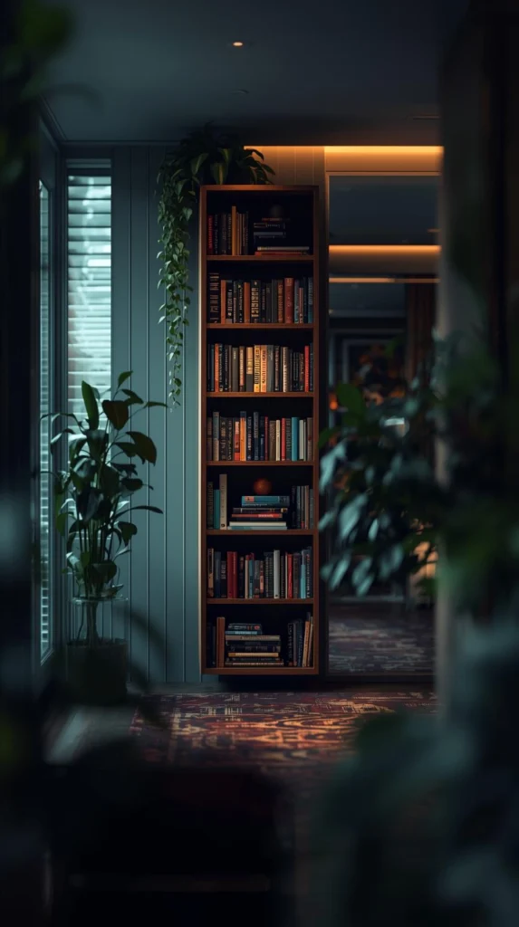 Take advantage of wall height by installing tall, narrow shelves to store books, plants, or decorative items while keeping the floor space free.