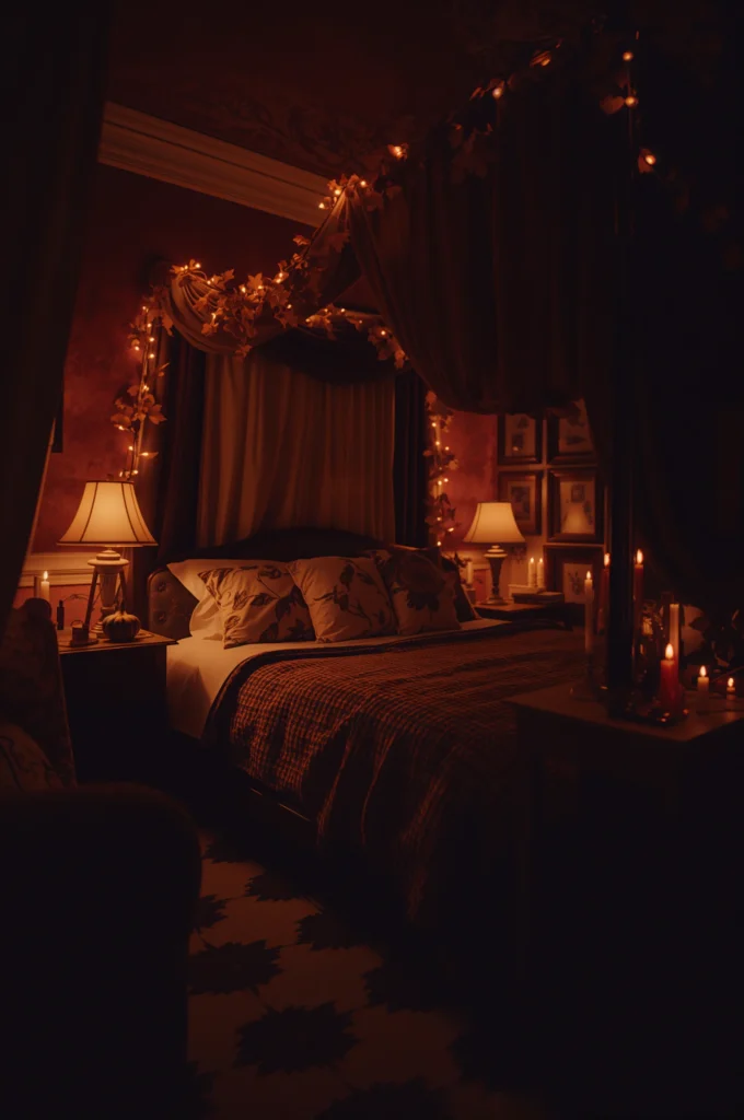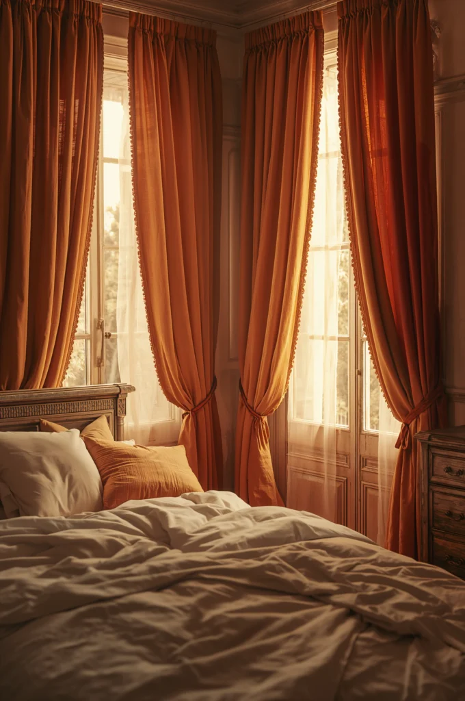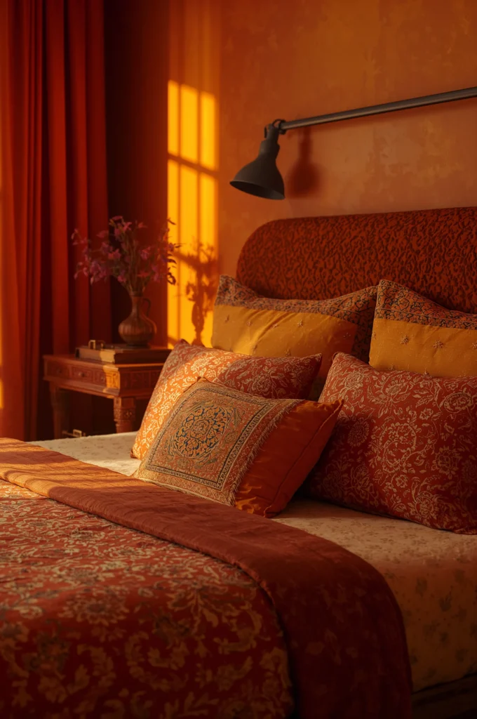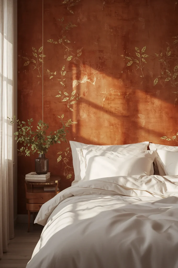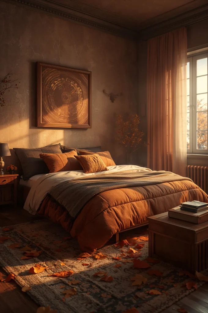 Incorporate rich rust, burnt orange, mustard yellow, and deep browns in your bedroom palette to evoke the colors of fall leaves and golden sunsets.