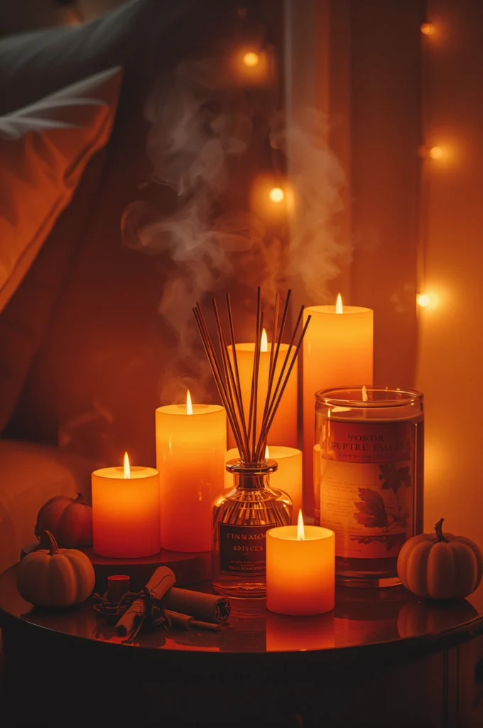 Use candles or diffusers with pumpkin spice, cinnamon, clove, or vanilla aromas to bring the unmistakable essence of fall indoors.