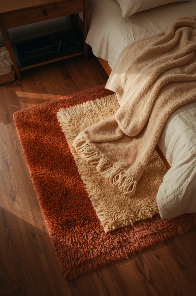 Add thick rugs in warm, earthy hues to soften hardwood floors and provide a cushy place for bare feet in chilly autumn mornings.