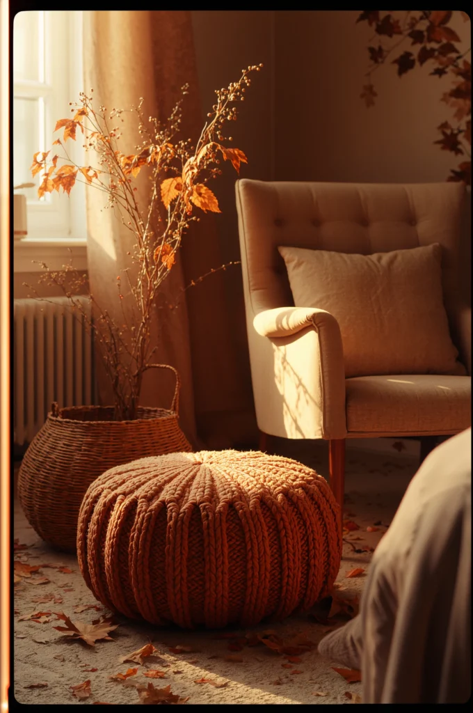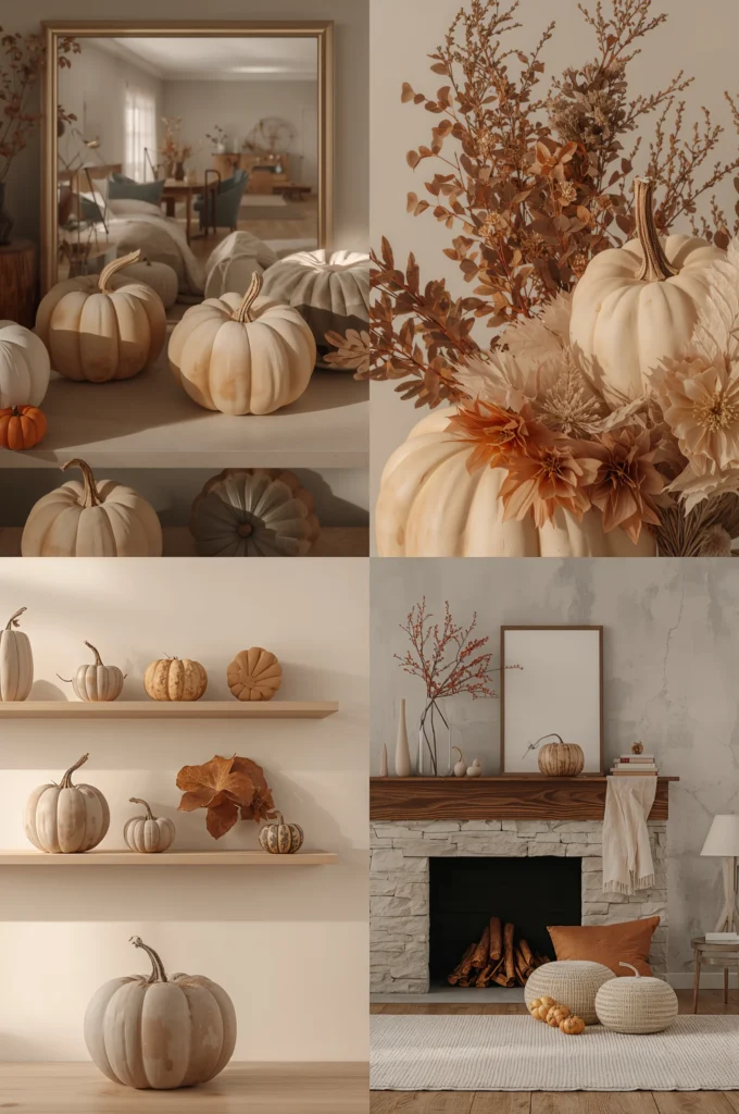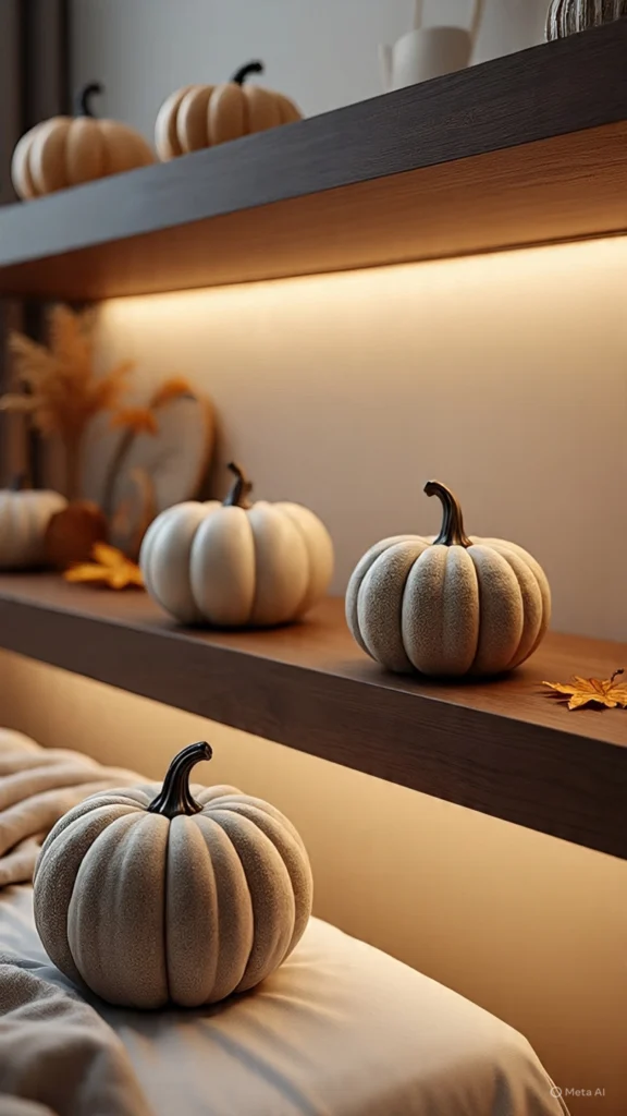 Add tasteful neutral pumpkin accents—ceramic or fabric versions—to subtly bring fall’s signature symbol indoors.