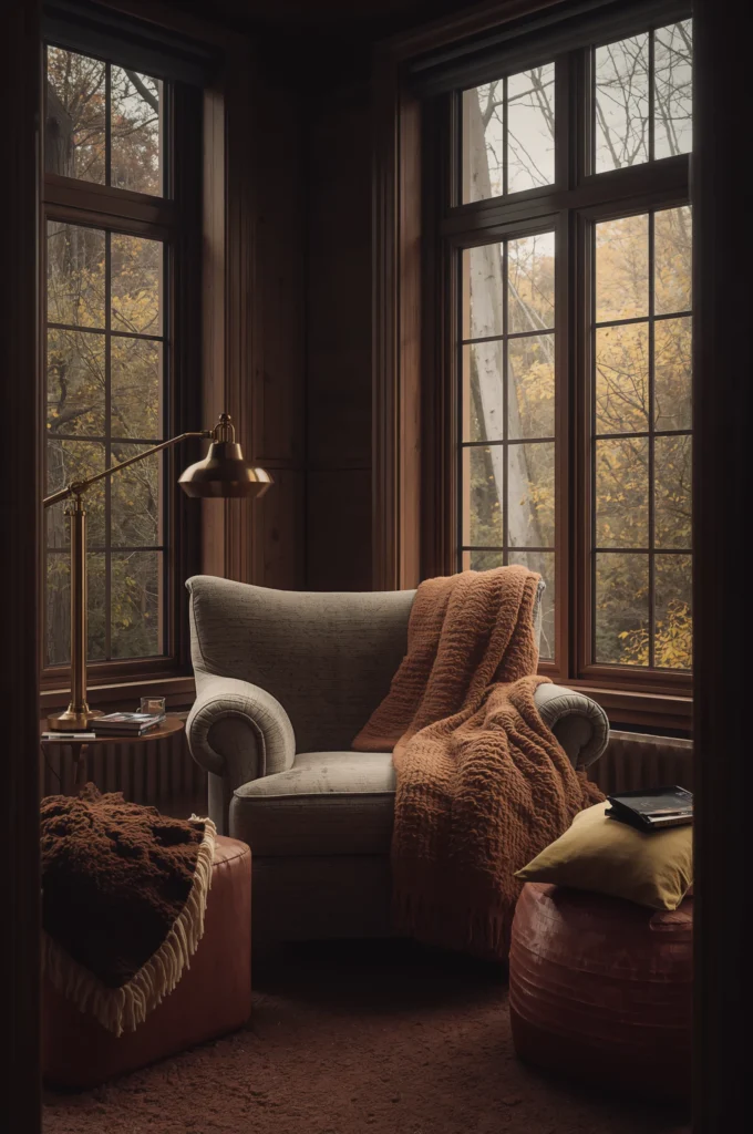 Create a comfy nook with a plush armchair, warm throw, and a small reading lamp for quiet fall evenings.
