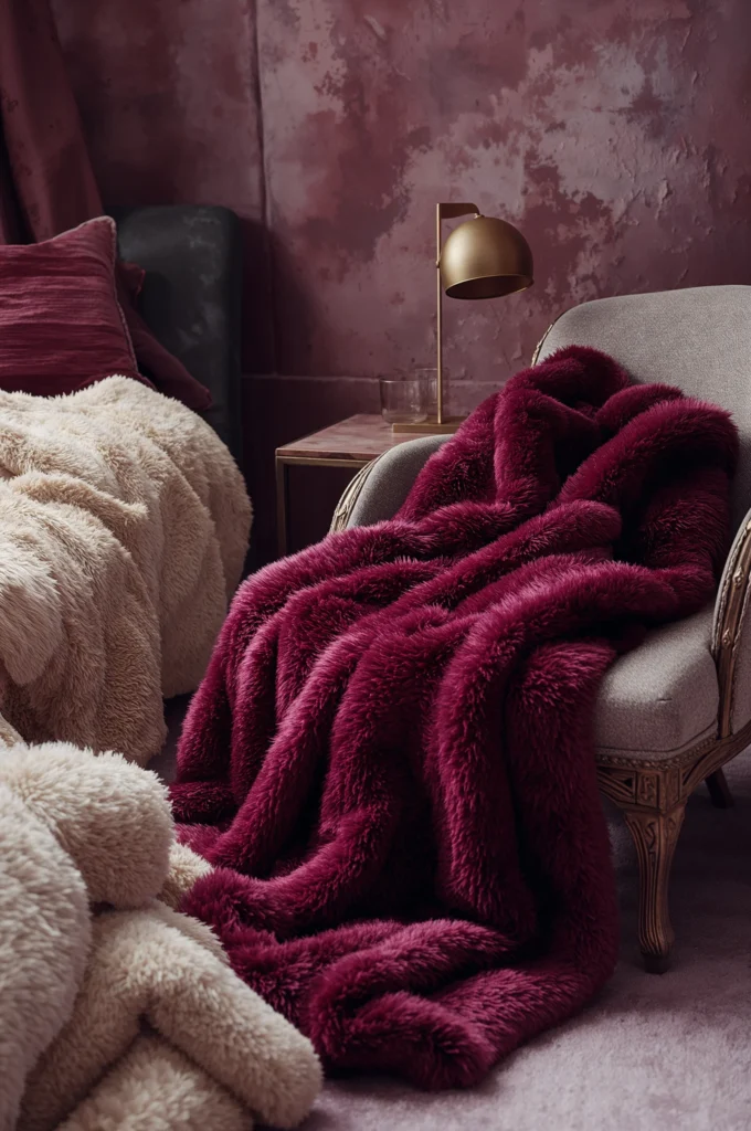 Drape a faux fur throw across your bed for an extra luxurious layer that’s perfect for chilly evenings.