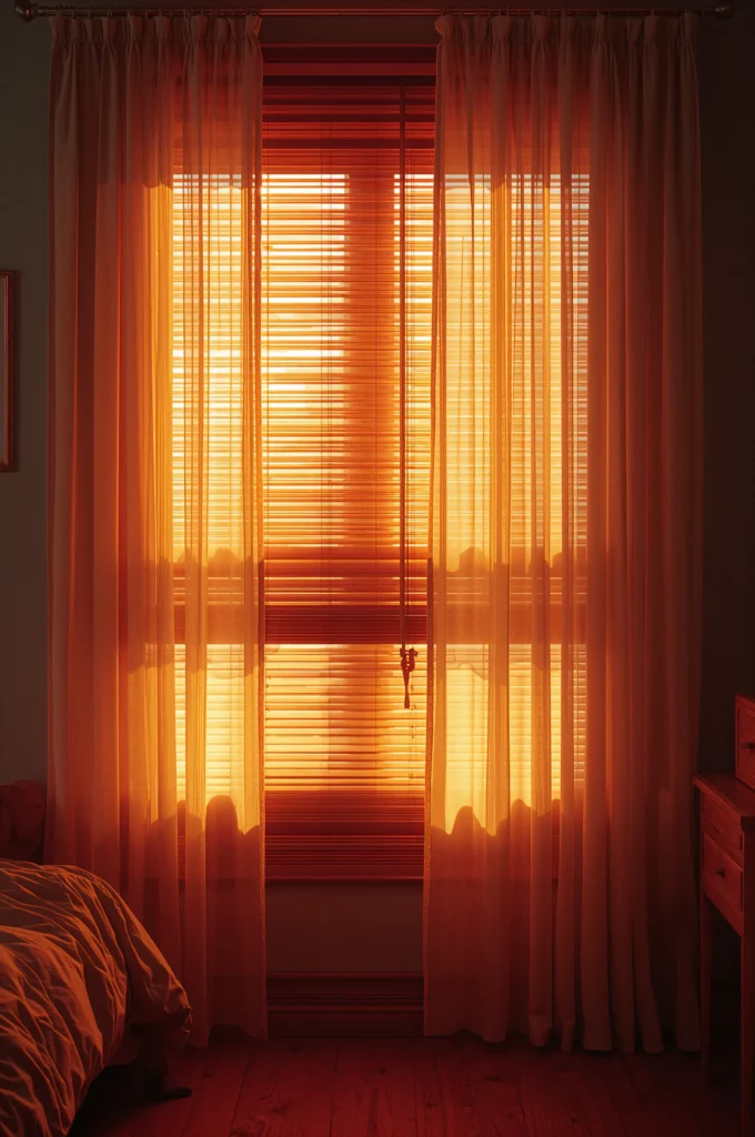 Use layered blinds or shades that allow for soft light filtering, contributing to the warm ambiance.