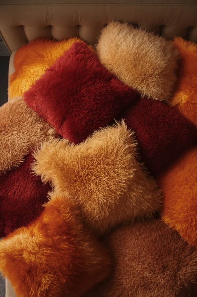 Mix velvet and faux fur pillows in autumnal shades on your bed or reading nook for touches of luxury and comfort.