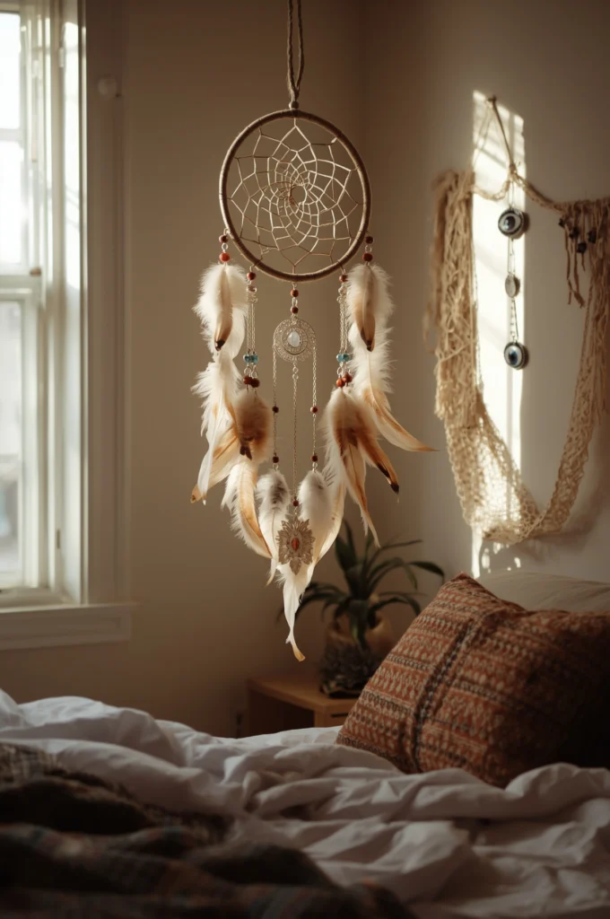 Dreamcatchers and protective charms bring both energy and style to your witchy bedroom. Hang them above your bed to encourage restful sleep and filter out negativity. Choose dreamcatchers with feathers, crystals, or beads to match the witchy aesthetic. Evil eye charms or protective talismans can also be hung on walls, doorknobs, or windows. Opt for natural materials like twine, wood, and leather for a rustic look. You can make your own dreamcatcher for a personal DIY project. Layering multiple charms creates an eclectic and mystical feel. Hanging them in front of windows allows light to pass through, highlighting their details. Over time, these charms become symbolic anchors in your space. They not only serve as protective tools but also act as striking decor. Dreamcatchers and charms are simple yet powerful ways to bring magic into your bedroom.