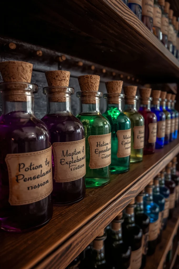 Potion bottles are a fun way to bring apothecary style into your witchy bedroom. Use small glass bottles filled with colored water, glitter, dried herbs, or essential oils. Arrange them in clusters on shelves, trays, or window sills. Adding cork tops and handwritten labels makes them look authentic. Clear glass catches light beautifully, while tinted bottles in purple, green, or blue add extra drama. You can even create seasonal displays, such as fiery colors for autumn or icy tones for winter. Potion bottles pair well with other witchy items like crystals or candles. For a DIY project, try distressing bottles with paint or wrapping them in twine. Over time, you can grow your collection into a signature feature of your bedroom. Potion bottles work as playful decor while reinforcing the magical theme of your space.