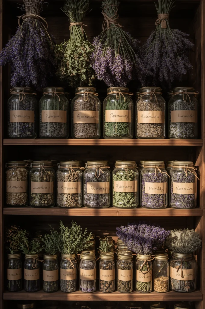 Herbs bring a natural and authentic witchy charm to your bedroom. Glass jars filled with dried herbs like rosemary, chamomile, or sage look both decorative and functional. Neatly labeling each jar creates an apothecary-style display that feels purposeful. Hanging herb bundles near windows or above doorways adds rustic texture. Lavender and eucalyptus provide calming aromas, making the space more relaxing. You can tie bundles with twine and hang them on hooks or curtain rods. They dry naturally and last for months as decor. Jars of herbs also look beautiful on floating shelves alongside crystals and candles. Some herbs carry specific meanings, such as sage for cleansing or rosemary for protection. This makes your decor practical and symbolic. A small herb display instantly transforms your bedroom into a cozy, mystical retreat. Combining visual appeal with natural scents, herbal jars and bundles are a timeless witchy decor choice.